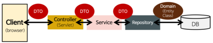 DTO는 layer간의 통신용도(insert, update, deleter)로 오고가는객체임