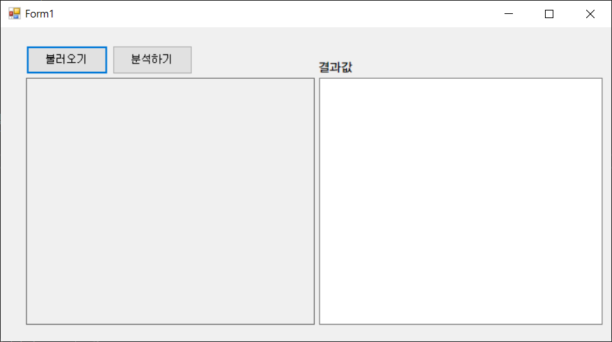 불러오기 버튼을 통해 이미지를 불러오면, 분석하기 버튼을 통해 결과값 창에 문자인식이 나타나게된다.